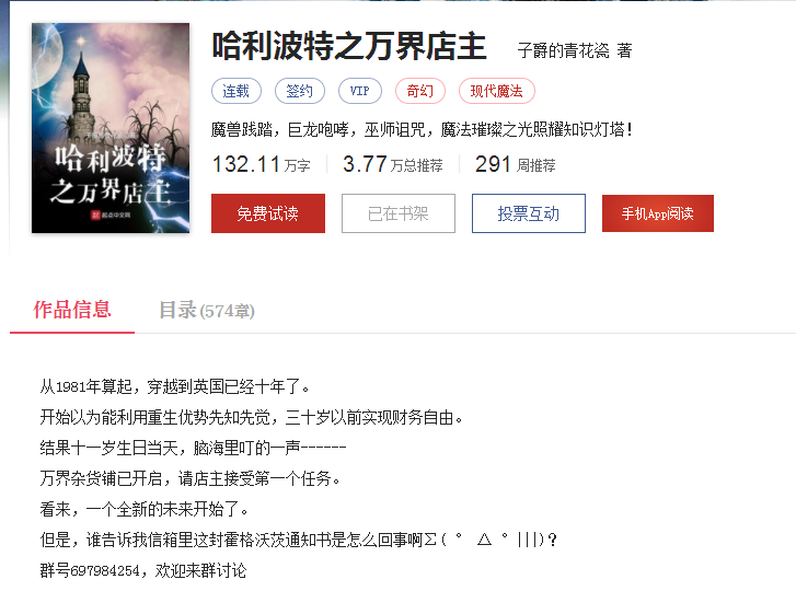 《哈利波特之万界店主》作者:子爵的青花瓷(564)TXT下载