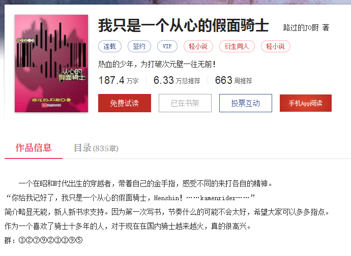 《我只是一个从心的假面骑士》作者:路过的JO厨(795)TXT下载