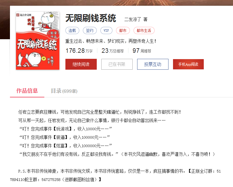 《无限刷钱系统》作者:二发凉了(663)TXT下载-小说-贤人小说网