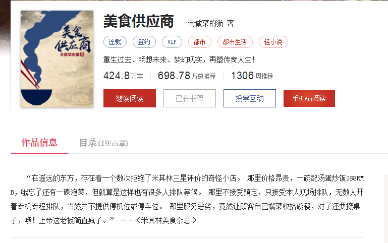 《美食供应商》作者:会做菜的猫(1902)TXT下载最新章节