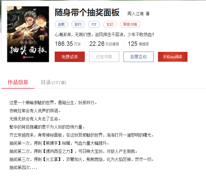 《随身带个抽奖面板》作者:再入江湖(713)TXT下载