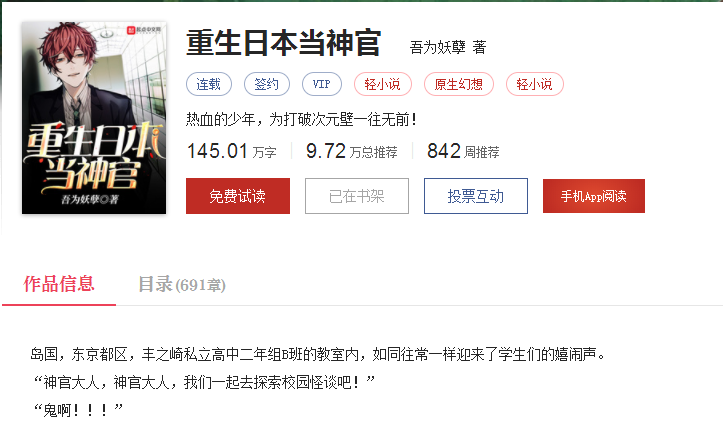 《重生日本当神官》作者:吾为妖孽(687)TXT下载