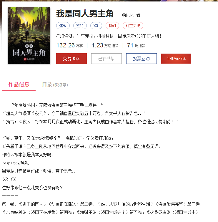 《我是同人男主角》作者:萌闪闪(627)TXT下载漫画